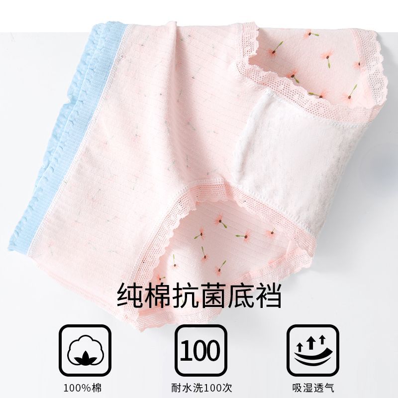 女士纯棉中腰女生内裤 不夹臀抗菌内裤 三角裤 新款 短裤 全棉时代内裤