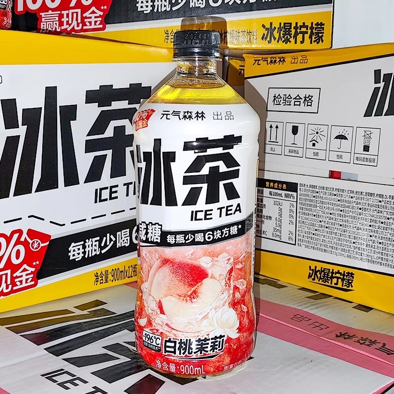 元 气森林冰茶减糖柠檬900ML大瓶饮料整箱白桃茉莉葡萄柚绿茶茉莉