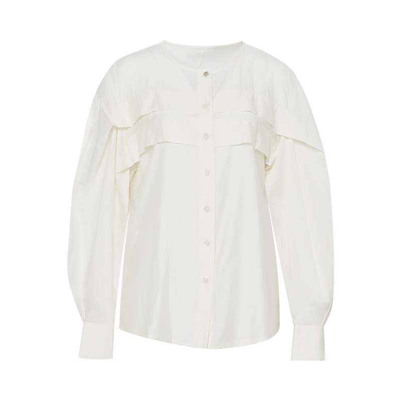 新款 女2025秋季 小个子上衣简约百搭通勤衬衣 衬衫 傲丝度圆领长袖