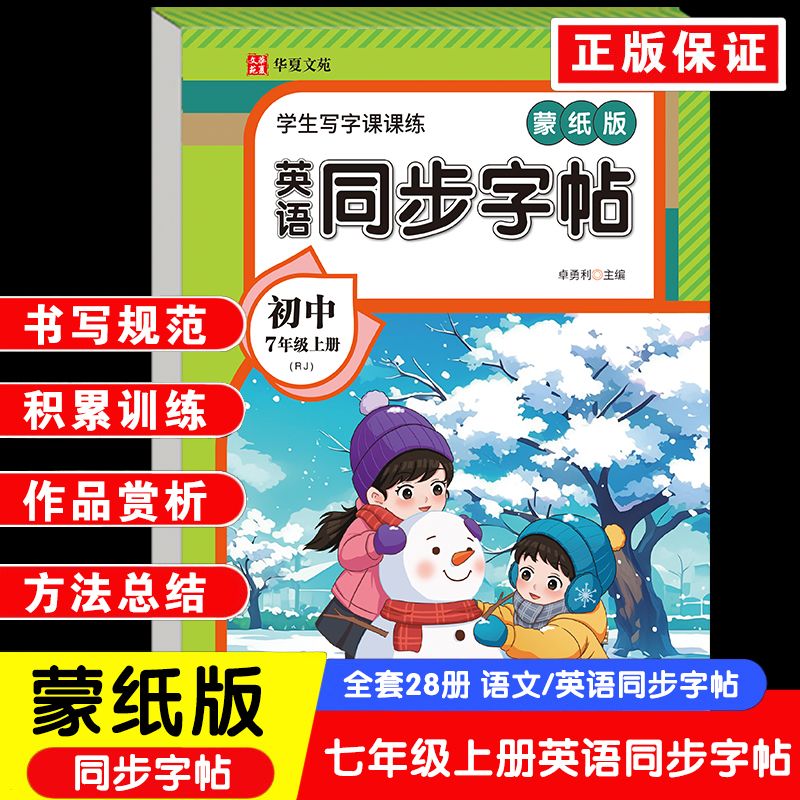 七八年级上下册初中生同步配套人教版 初中英语同步字帖 初中语文同步字帖 天天练描红练字本田字格生字抄写本 2025蒙纸版