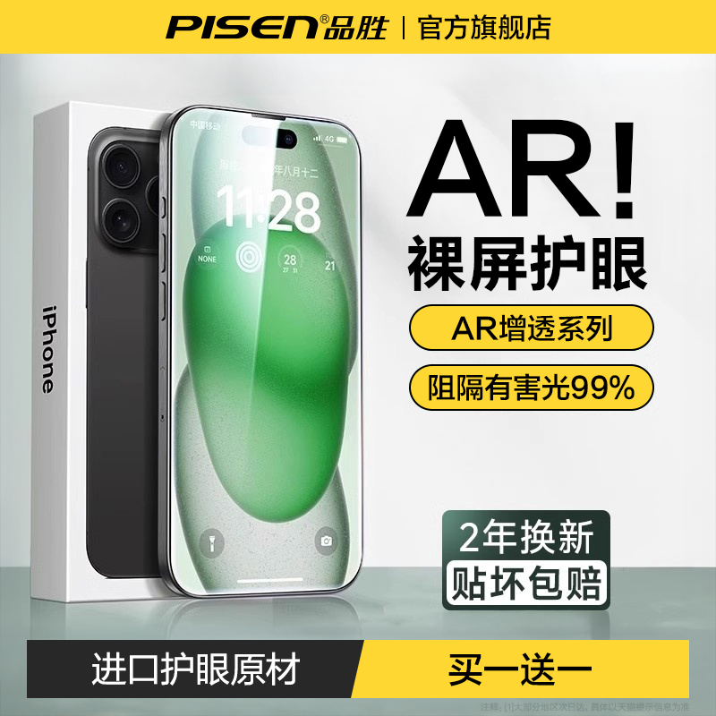 12高清pm 品胜适用苹果17钢化膜iPhone16Pro手机膜15Pro抗反射防蓝光膜14护眼贴膜ip13新款 超越AR德国护眼