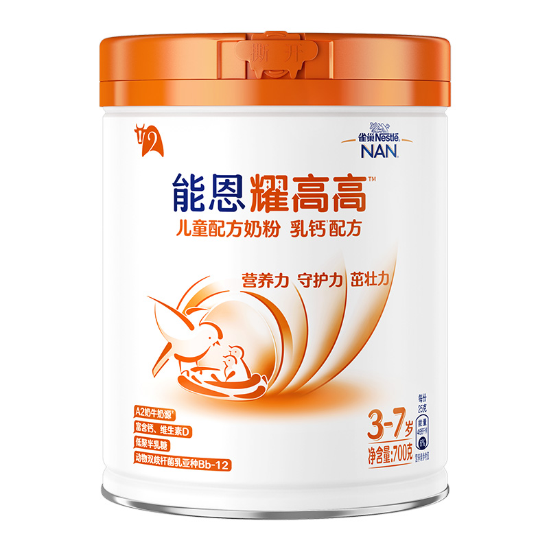 DHA 3岁 儿童配方奶粉 乳钙配方A2奶源 2罐 雀巢 700g 能恩耀高高