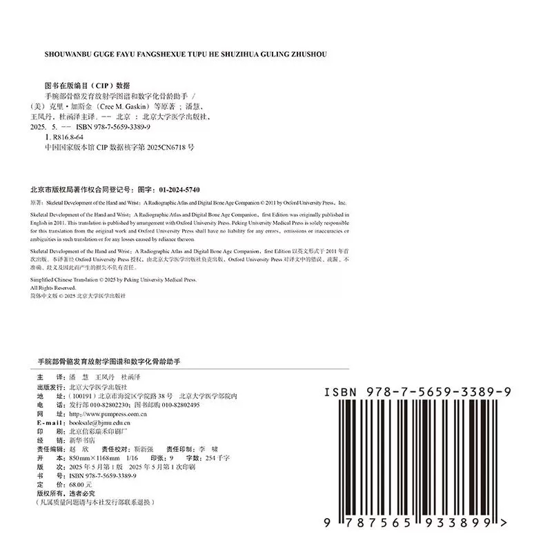 潘慧 社 王凤丹 北京大学医学出版 9787565933899 杜函泽 手腕部骨骼发育放射学图谱和数字化骨龄助手