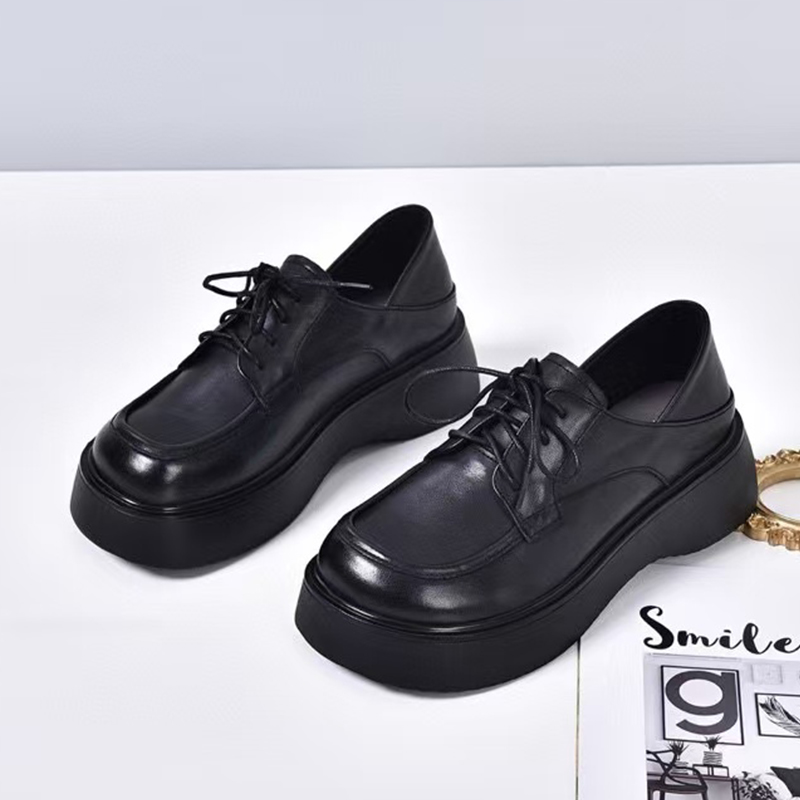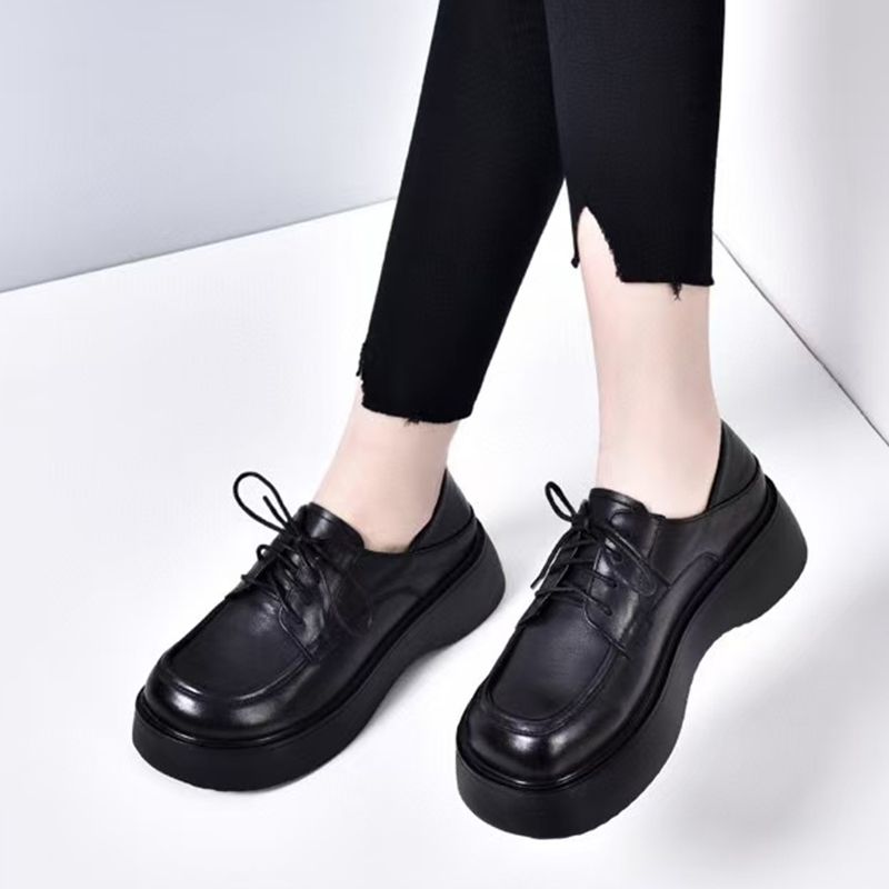 头层牛皮女鞋 百搭松糕鞋 英伦风女式 真皮厚底单鞋 大头皮鞋 2025新款