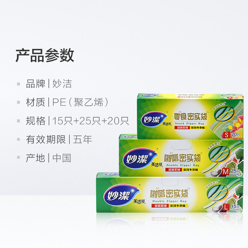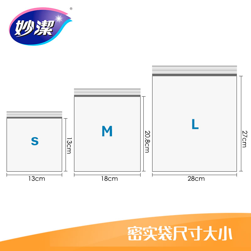 妙洁保鲜袋食品级站立密封口中药分装 家用冷冻中号小号70只密实袋