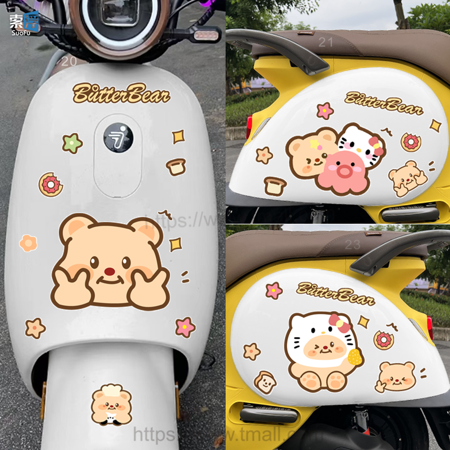 可爱黄油小熊电动车贴纸卡通创意装 饰贴画爱玛电瓶车划痕遮挡防水