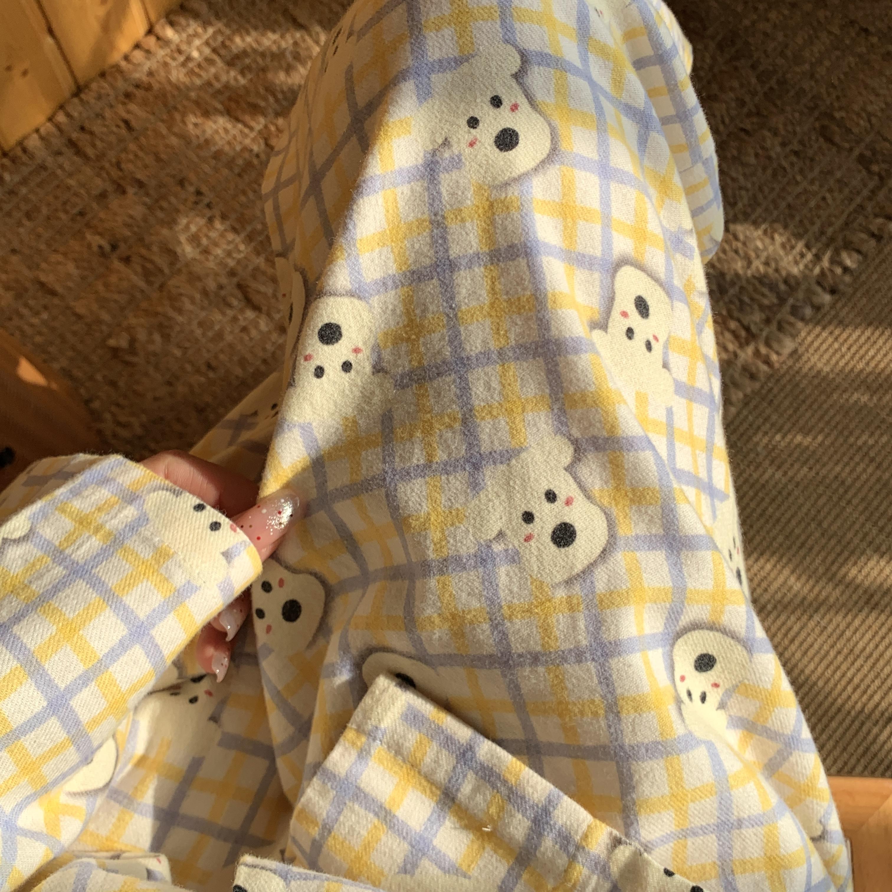 情侣睡衣 tbh野兽派家居熊猫嘭嘭法兰绒家居服套装 可外穿秋冬长袖