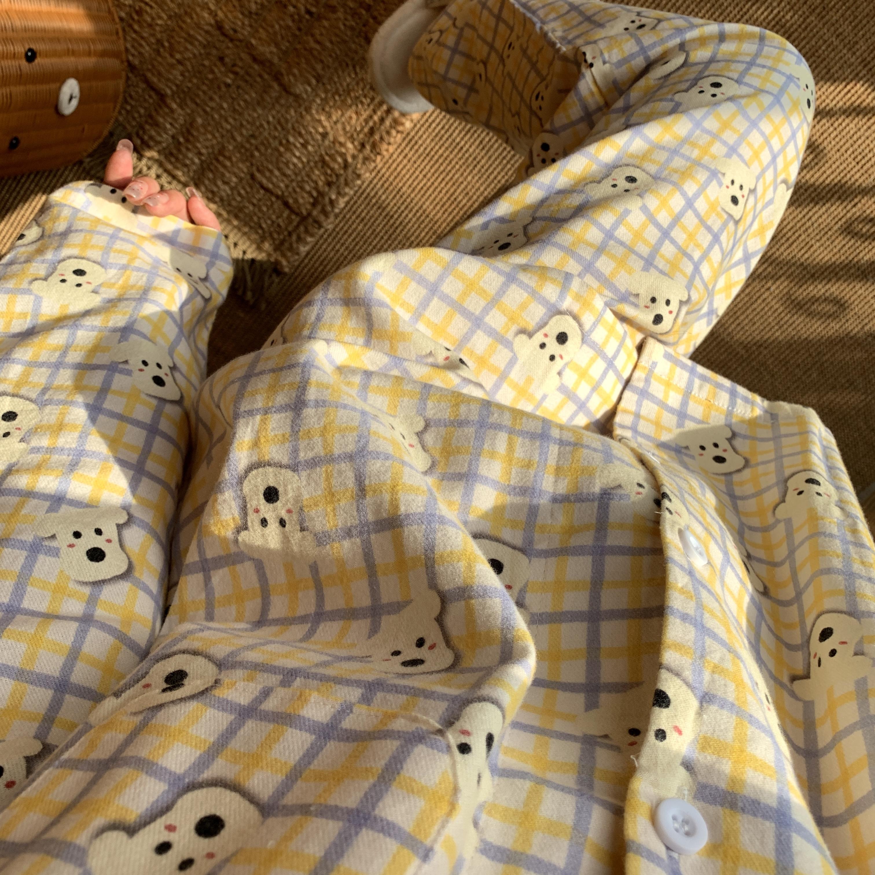 翻领情侣款 法式 舒适秋冬外穿睡衣 开襟家居服套装 ubras云棉长袖