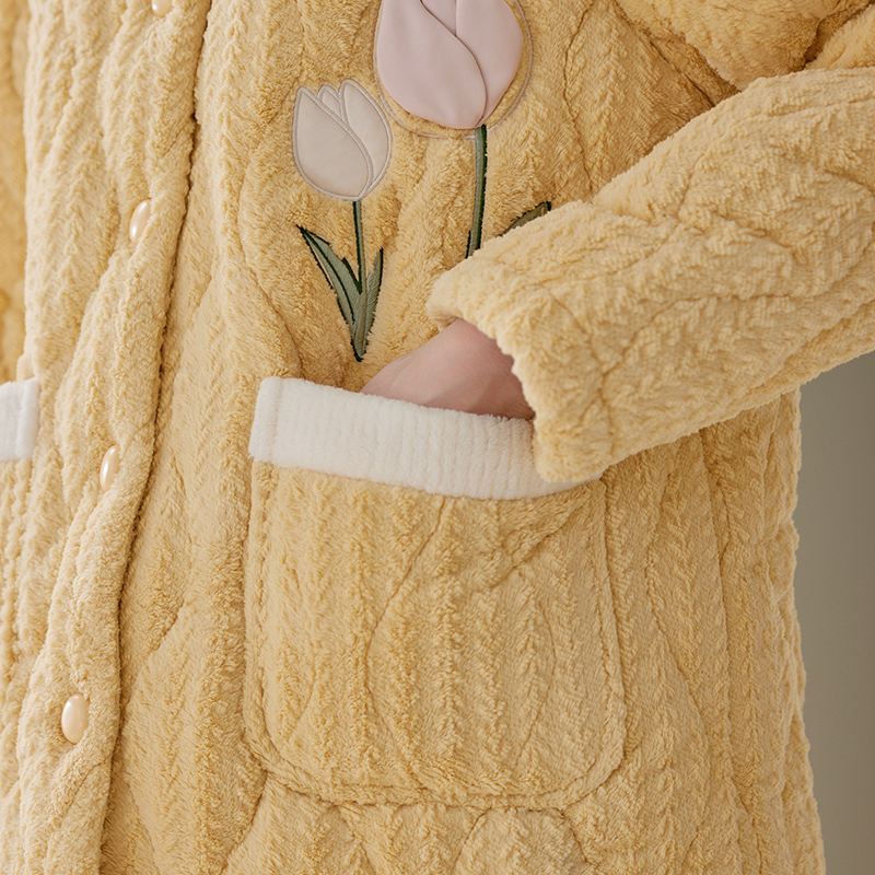 芬腾女士睡衣冬季 珊瑚绒三层加厚夹棉袄加绒保暖抗静电家居服套装