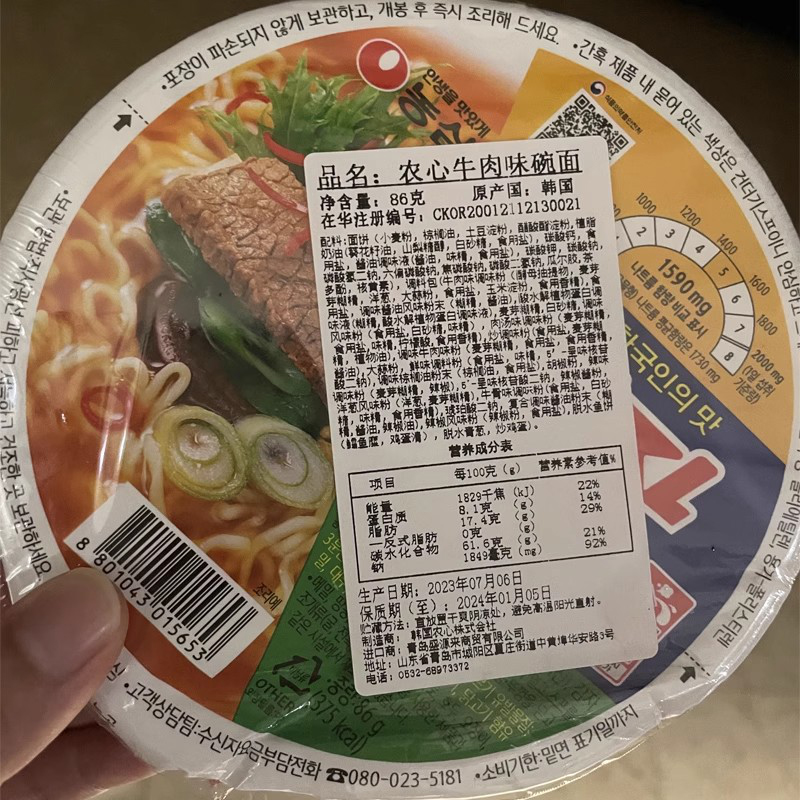 农心牛肉碗面辣白菜杯面韩国进口泡面韩式 面 方便面泡菜味拉面桶装