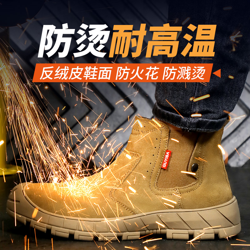 防砸防刺穿工地工作轻便钢头带钢板老保男鞋 焊工鞋 高帮 男款 劳保鞋