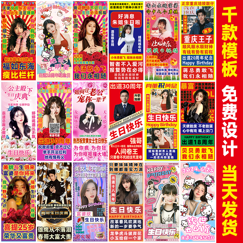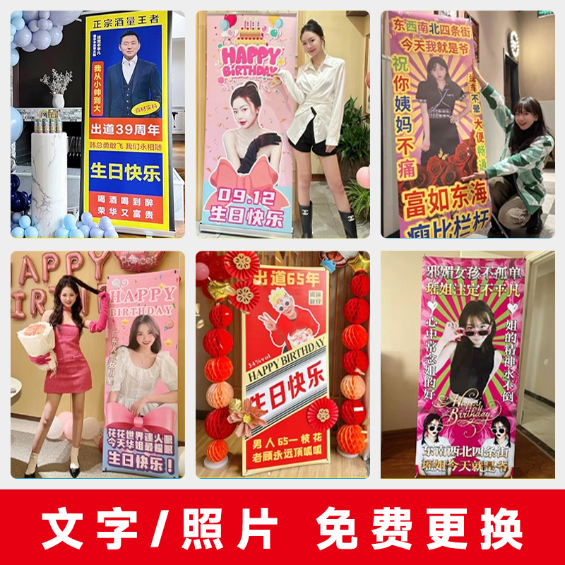 生日海报定制人形立牌易拉宝展架恶搞笑搞怪横幅土味接机离职制作