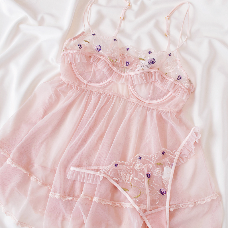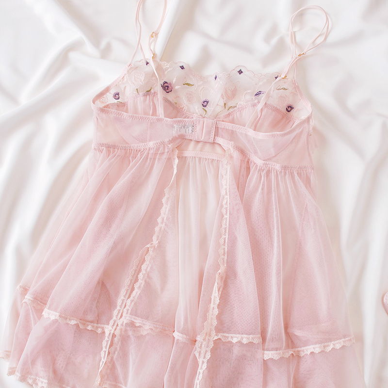 法式 小雏菊蕾丝美背吊带睡裙 仙女小胸性感睡衣
