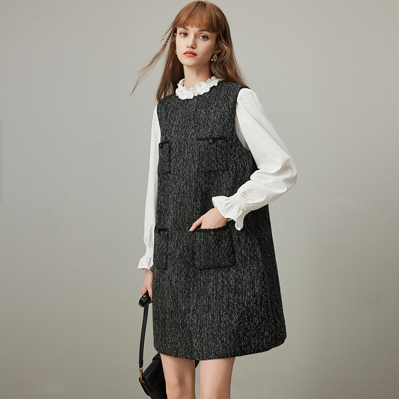 小个子无袖 新款 连衣裙 小香风羊毛背心裙女2025年秋季 dfvc灰色法式