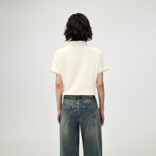 修身 森马POLO衫 复古辣妹夏季 设计感绑带美式 印花上衣小心机 女短款