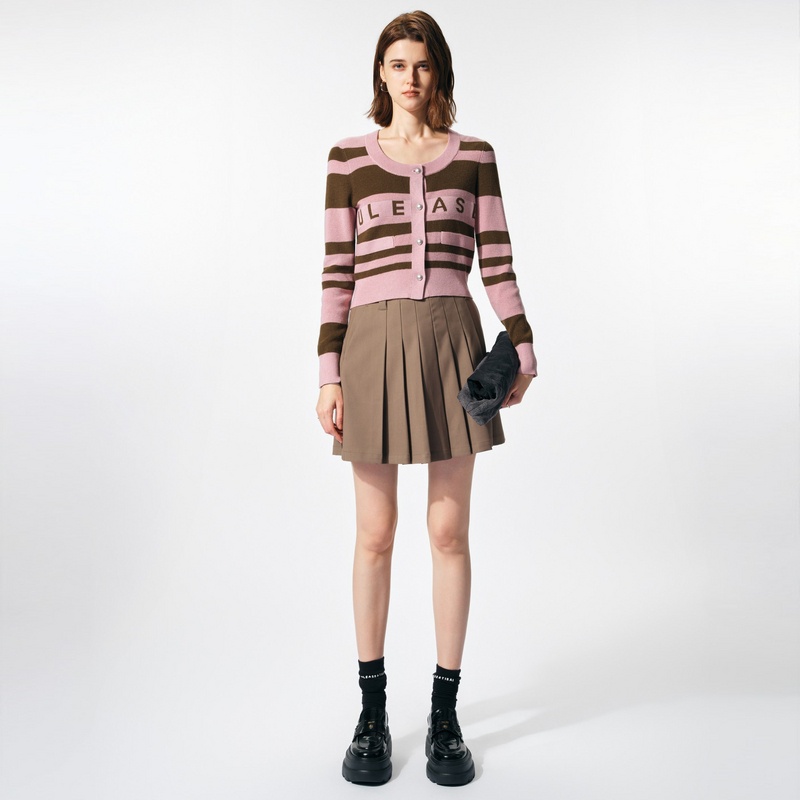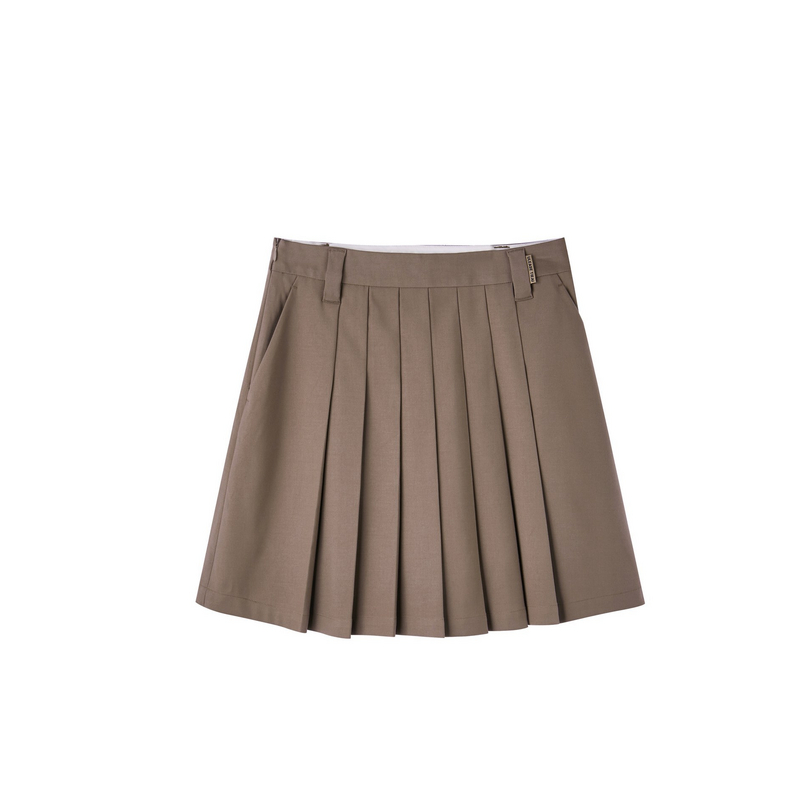 新款 简约A字裙半裙尤缇2025春季 TI咖色复古学院风百褶短裙女装
