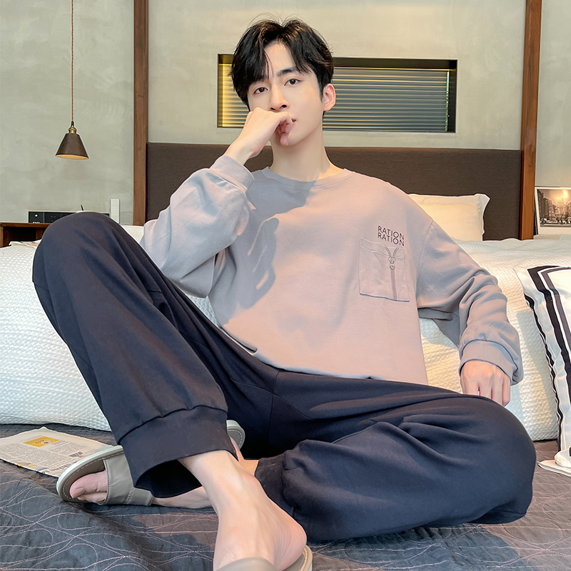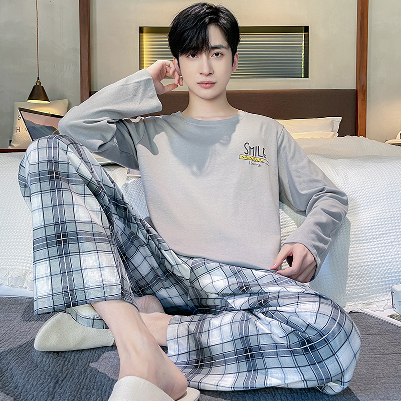 2025新款 棉质长袖 青少年男款 大码 睡衣男士 家居服可外穿套装 春秋款