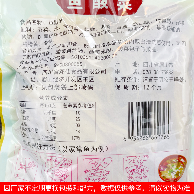 邓仕鱼酸菜380g四川泡菜酸菜鱼调料家用商用鱼酸菜