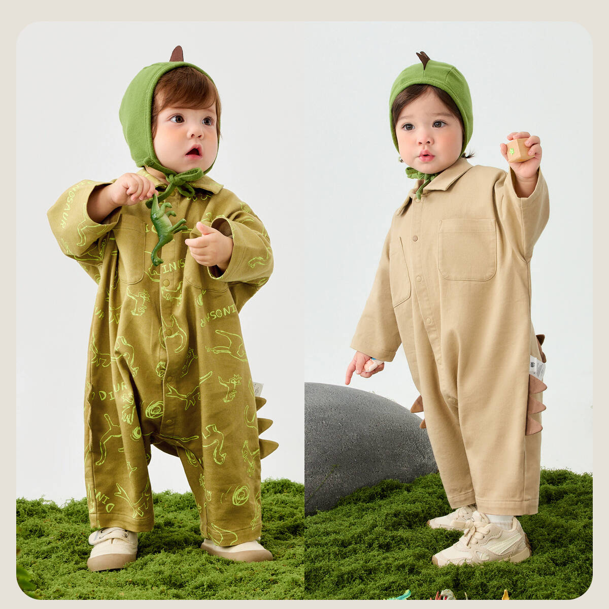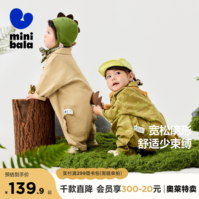 迷你巴拉巴拉男女童外出连体衣长袖 亲肤吸湿速干恐龙爬服2025春