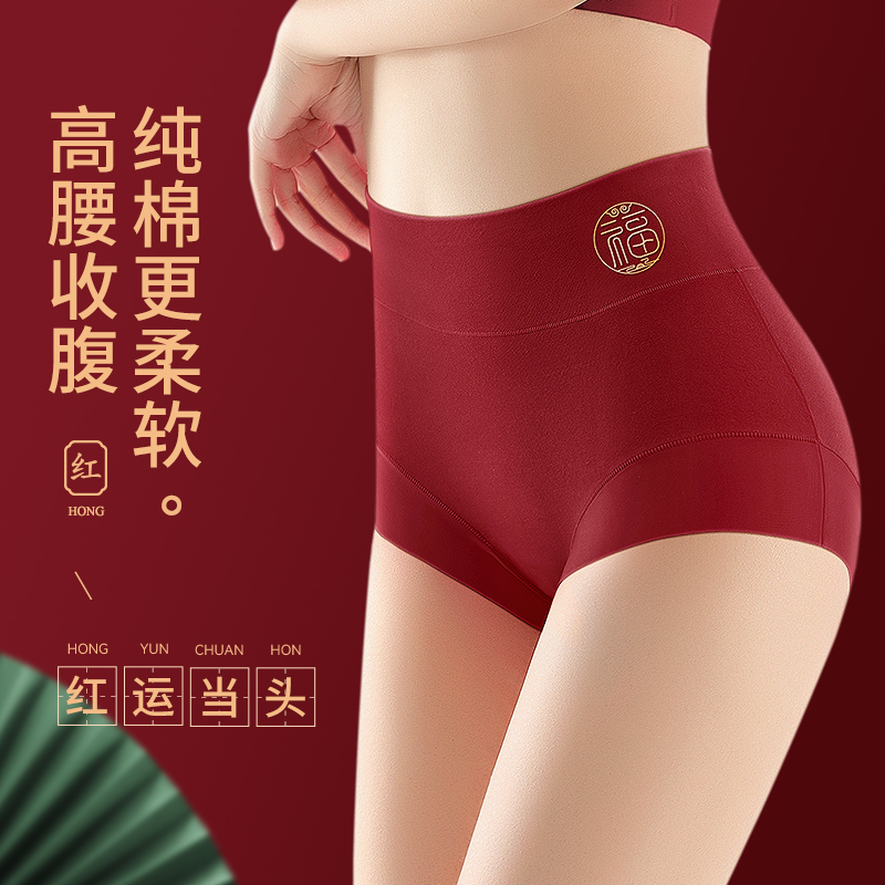 本命年内裤 女纯棉抗菌裆2025属红色高腰收腹提臀平角新娘抑菌袜子