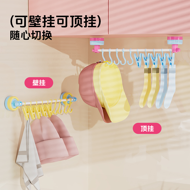吸盘袜子晾晒架凉晾衣架阳台家用飘窗室内晒内衣裤 神器多夹子挂钩