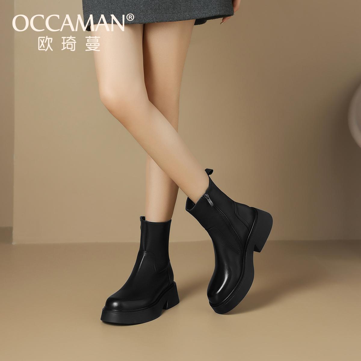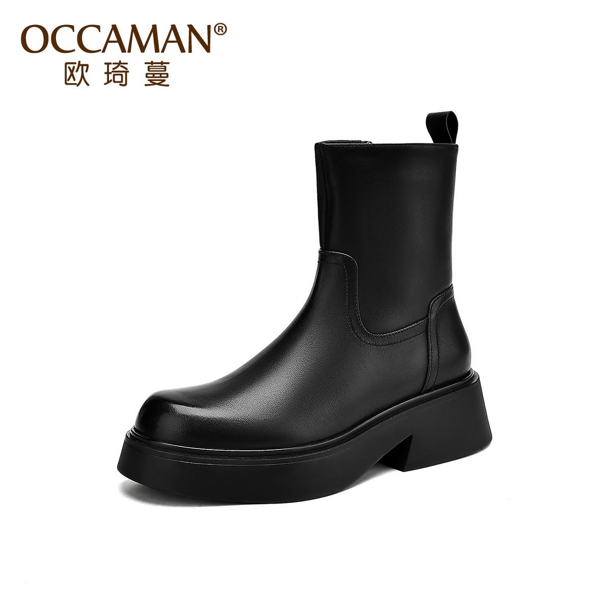 达芙妮黑色马丁靴女款 皮靴厚底炸街英伦风增高靴子女短靴 2025秋季