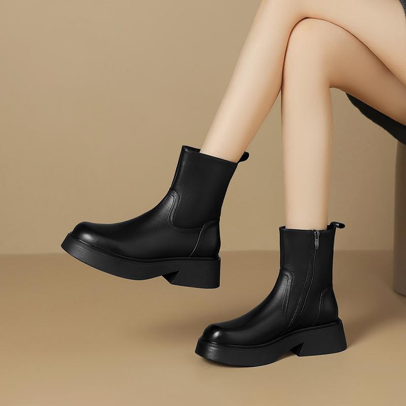 美拉德棕色靴子厚底黑色短靴 秋复古女鞋 英伦风马丁靴女款 2025新款