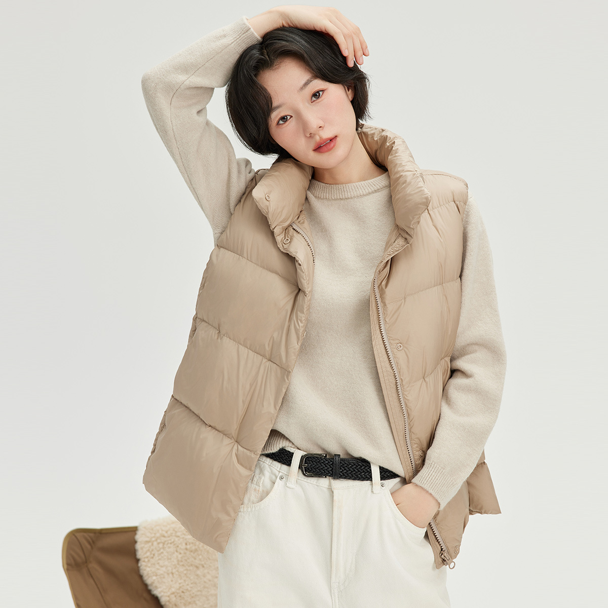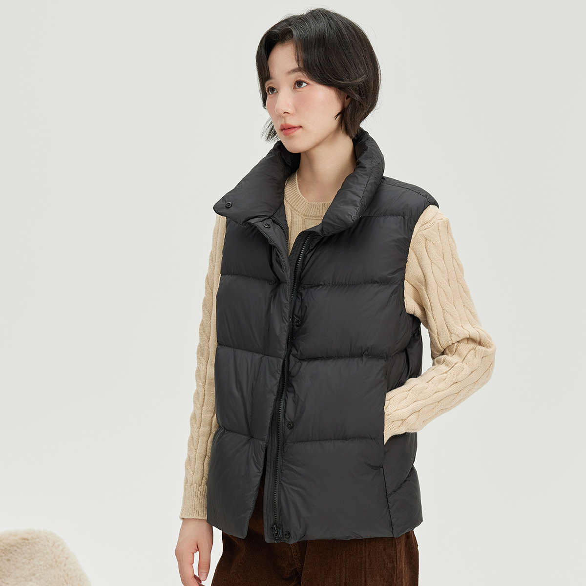 袂绒羽绒内胆女2025新款 背心外套 内穿圆领轻薄羽绒服内搭打底冬季