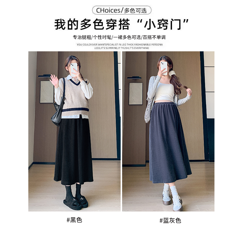 高腰梨型身材A字裙伞裙 半身裙百褶裙大码 胖mm显瘦百搭西装 中长款