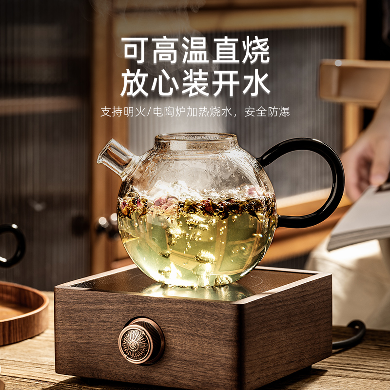 玻璃耐高温煮茶壶家用高硼硅可明火烧水泡花茶养生专用大容量单壶