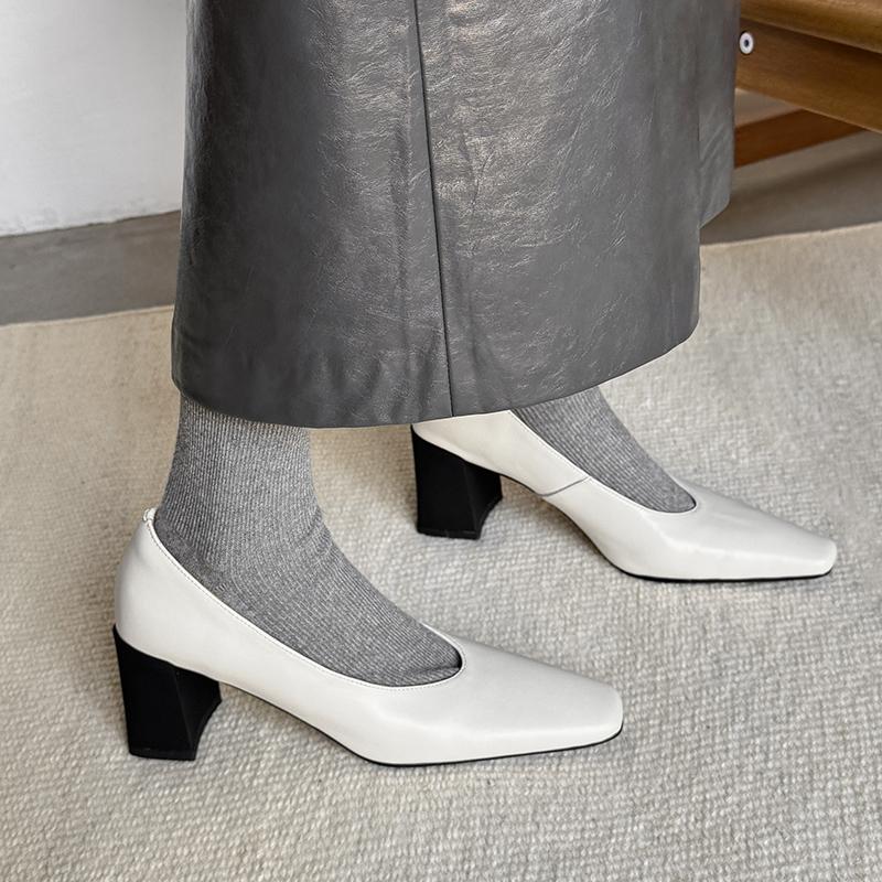 新款 康莉春季 高跟单鞋 女方头真皮通勤时尚 子 方扣浅口鞋 博主推荐