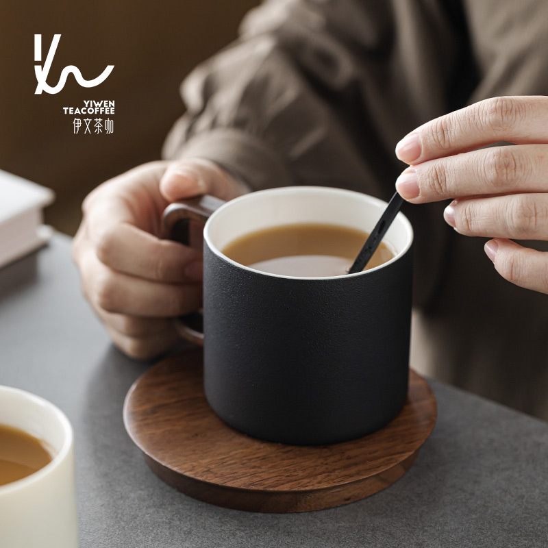 伊文陶瓷半见咖啡杯碟套装 情侣对杯家用马克杯子乔迁新居礼物定制