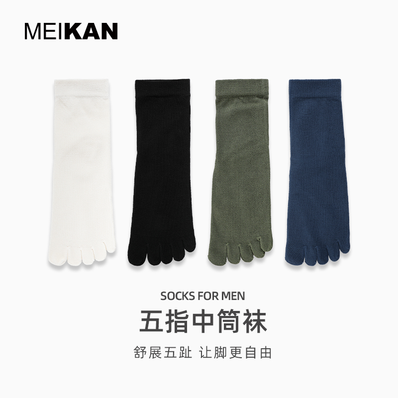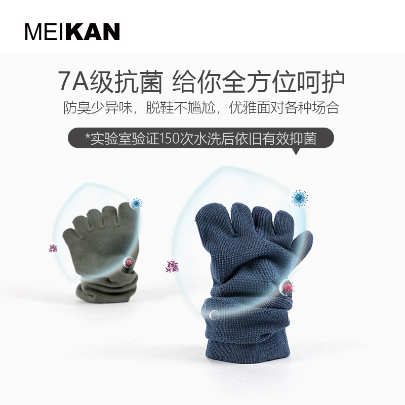 MEIKAN美看袜子男抗菌消臭棉袜吸汗透气五指秋冬棉袜脚趾分趾中筒