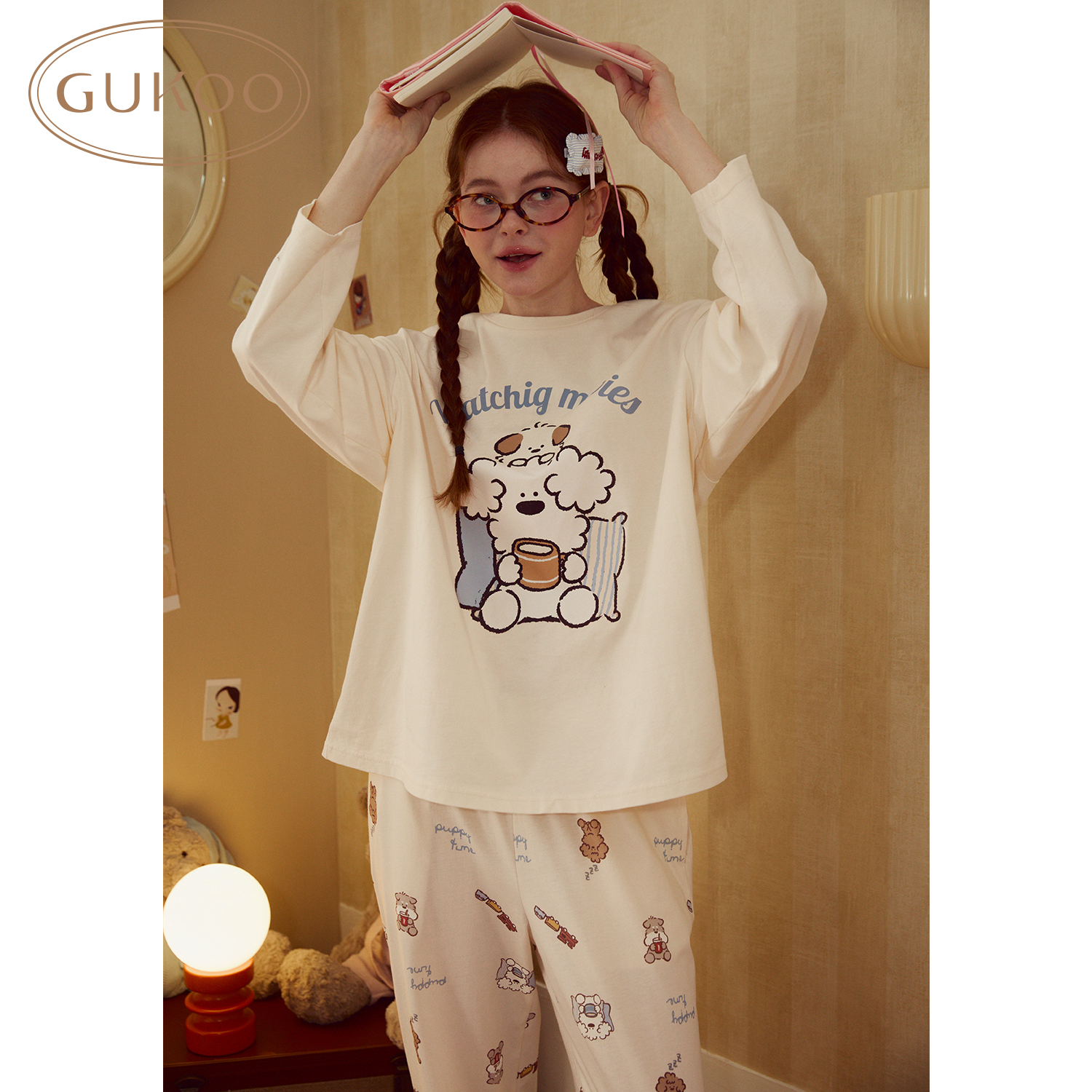 家居服套装 miiiiichan系列纯棉长袖 果壳睡衣女春秋款 Gukoo