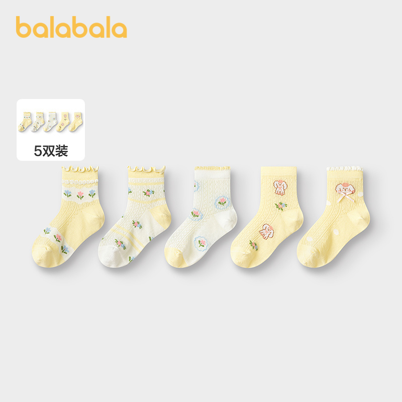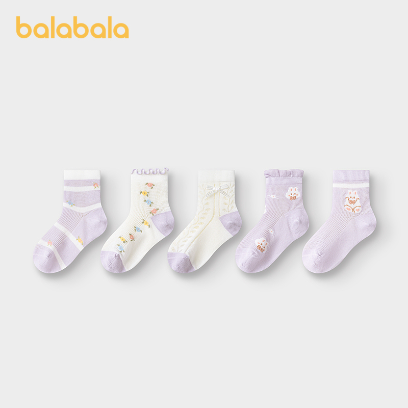 巴拉巴拉女童袜子儿童网眼袜夏中幼童甜美提花柔弹亲肤舒适
