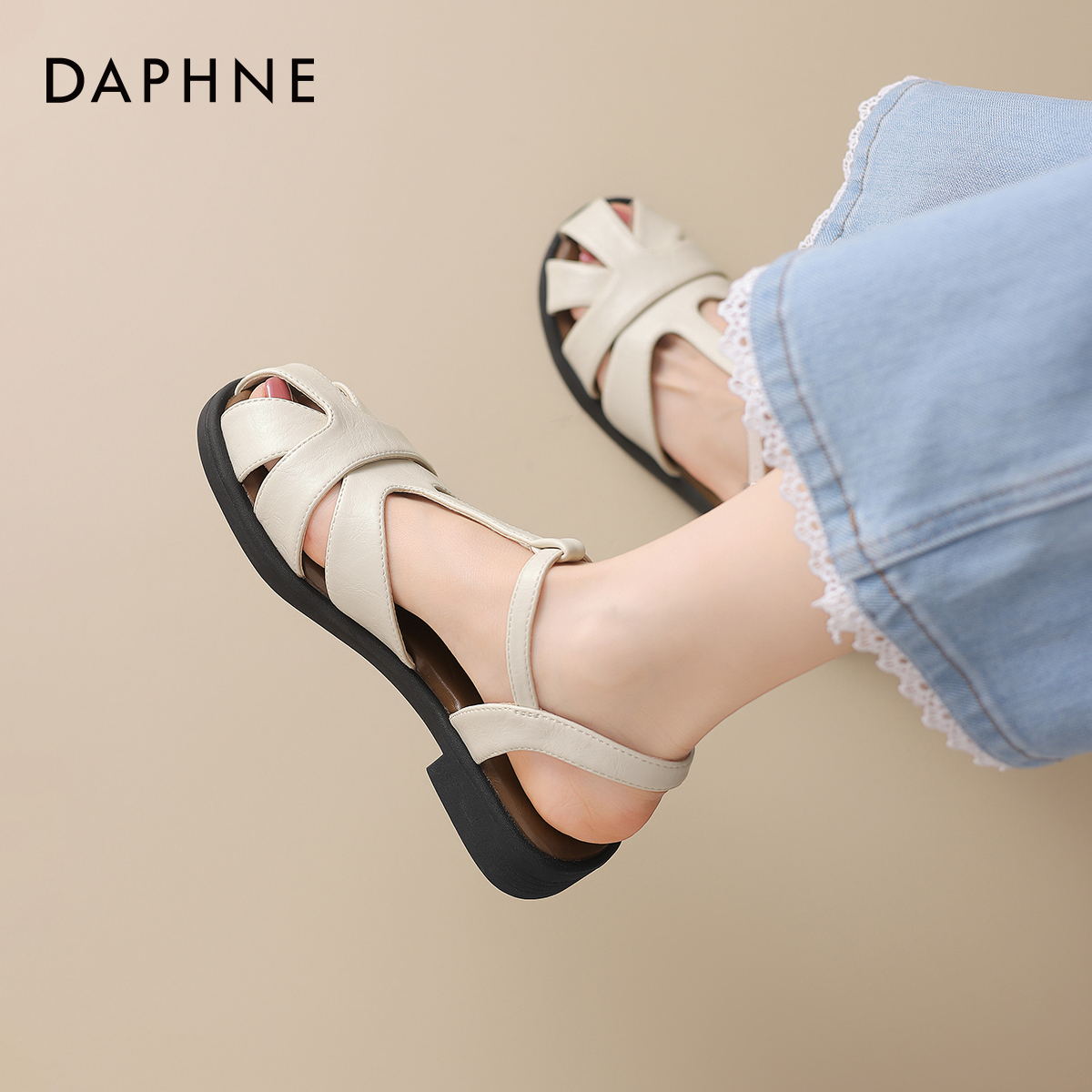 女款 软底包头猪笼鞋 2025新款 夏季 外穿配裙子平底鞋 达芙妮罗马凉鞋