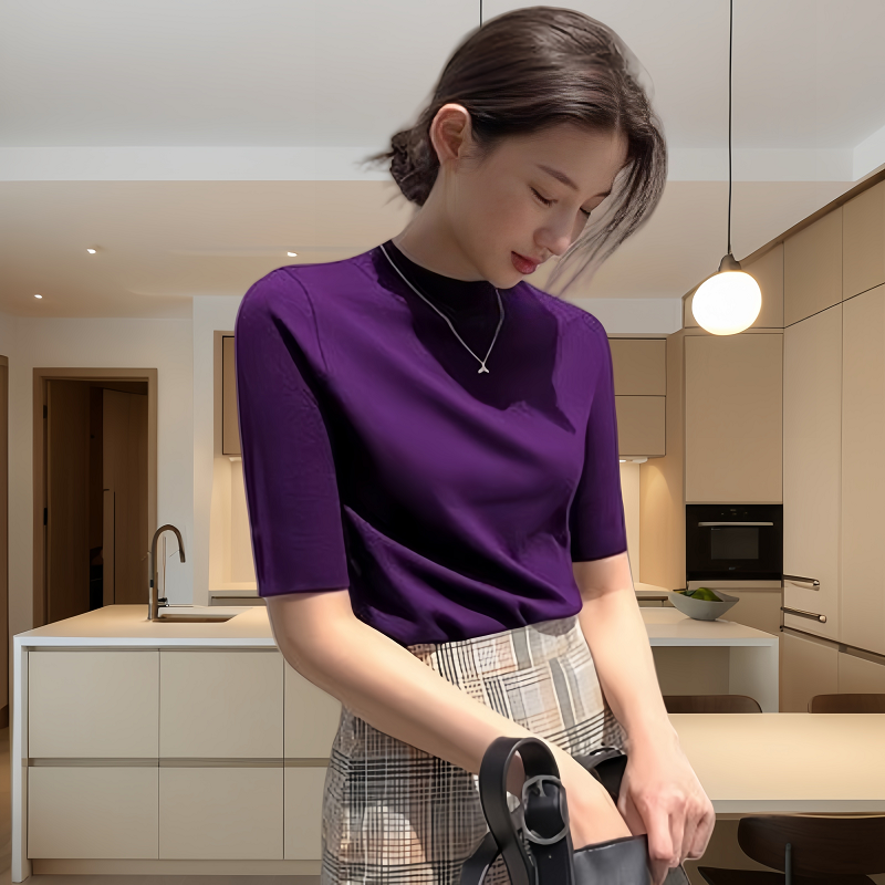 针织衫 五分袖 秋季 胖mm新款 上衣柔糯打底内搭毛衣女 大码 半高领中袖