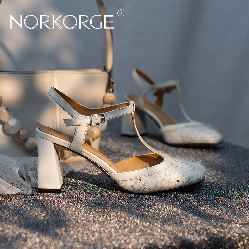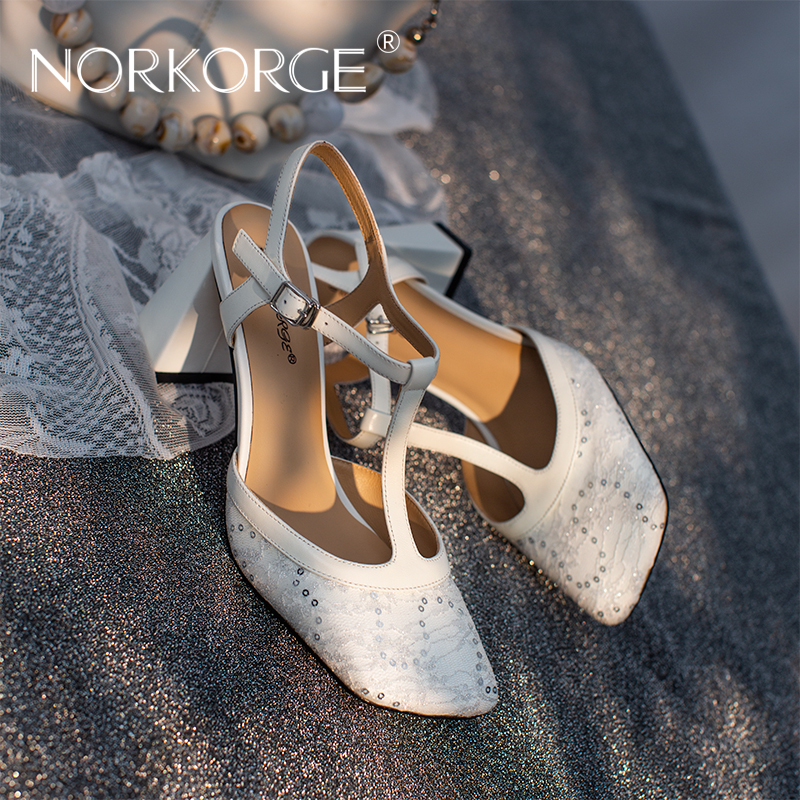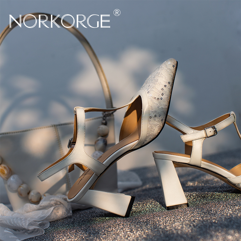 后空真皮粗跟高跟鞋 小香风方头蕾丝高跟包头凉鞋 女 夏法式 2025新款