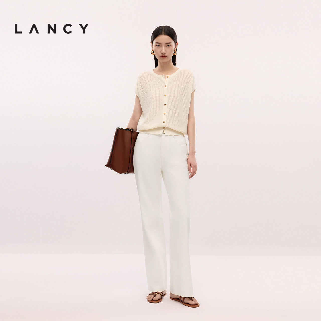 百搭白色棉质牛仔裤 简约气质直筒阔腿裤 女 朗姿2025年夏新款 LANCY