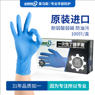 爱马斯一次性手套食品餐饮级橡乳胶蓝色丁腈医生检查专用加厚耐用