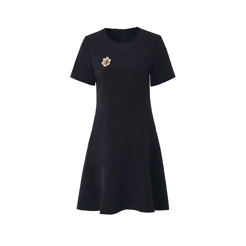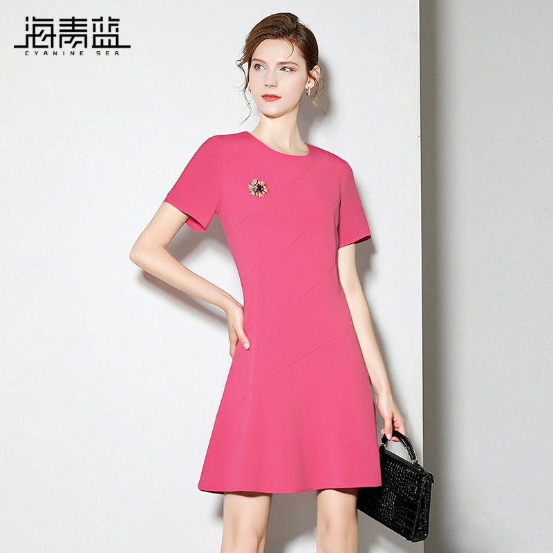 吉娜同款 连衣裙新款 朗姿 式 收腰显瘦裙 LIME莱茵简约撞色套装