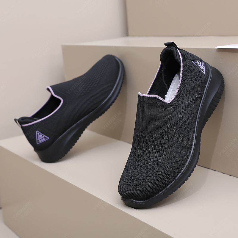 舒适一脚蹬休闲防滑飞织软底妈妈布鞋 超轻透气健步运动鞋 新款 春季