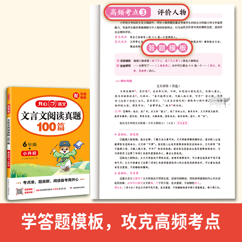 开心2026小学语文文言文阅读真题100篇6年级小升初文言文阅读理解答题模板真题训练题人教版 6年级语文同步阅读真题专项训练习册