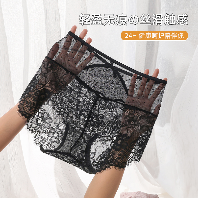 纯棉裆抗菌2025新款 中高腰夏季 女性感收腹无痕大码 洁韵朵蕾丝内裤