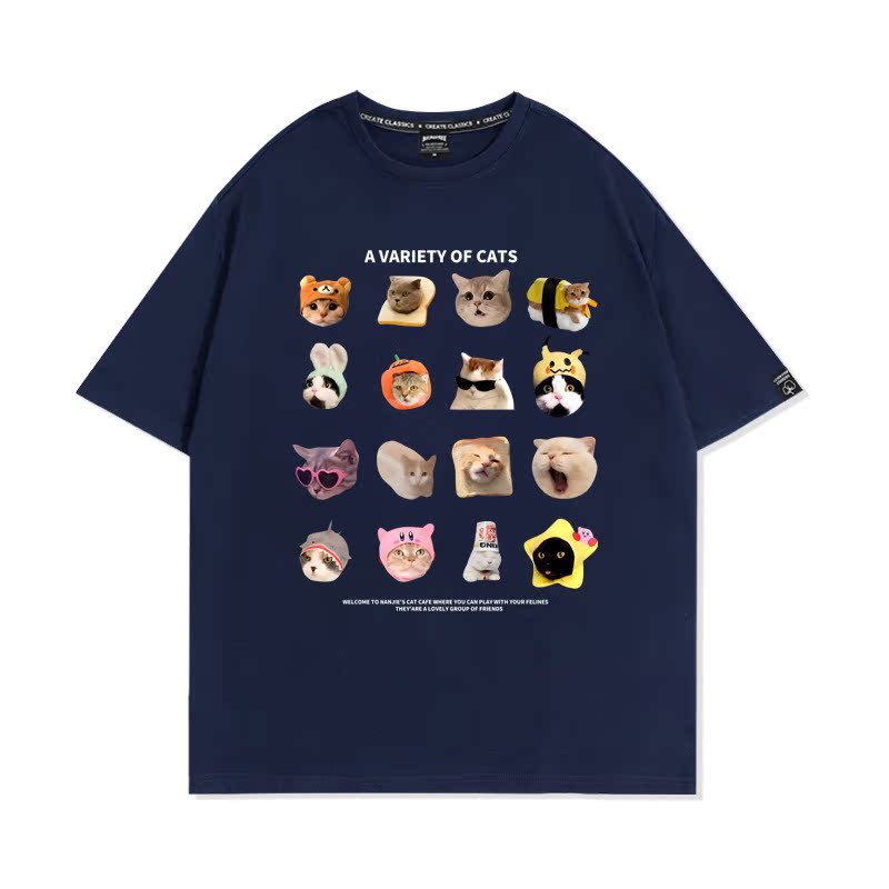 T恤男女纯棉潮流设计感小众ins超火情侣半袖 美式 复古猫咪印花短袖