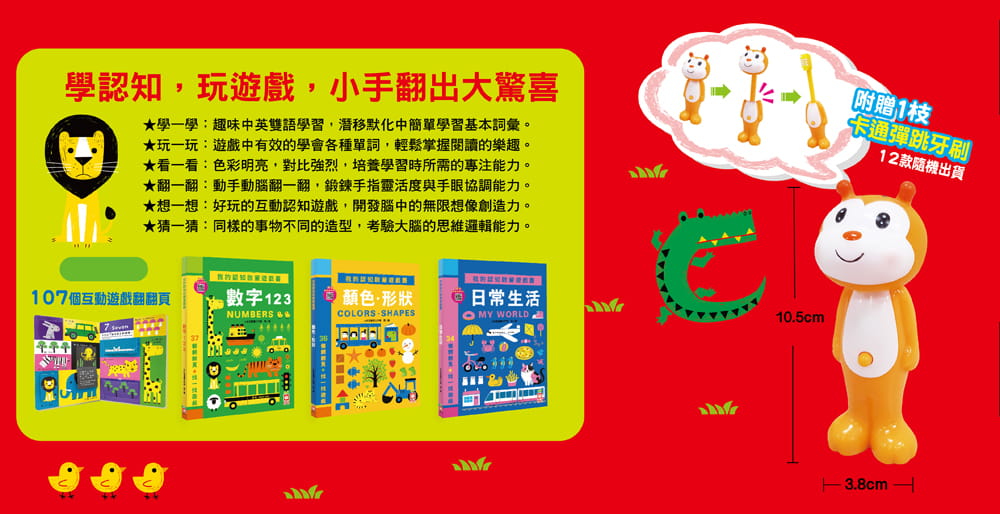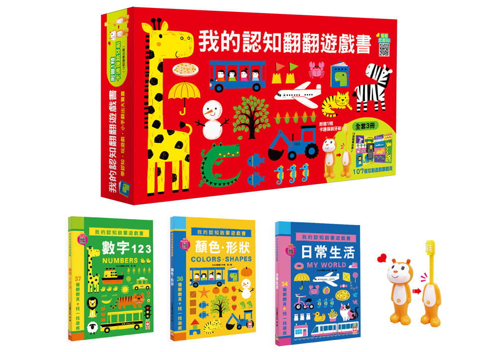 3本厚纸翻翻游戏书 附赠1枝卡通弹跳牙刷 幼福 预售正版 青少年文学原版 认知翻翻游戏书 童书 进口书 小红花图书工作室我