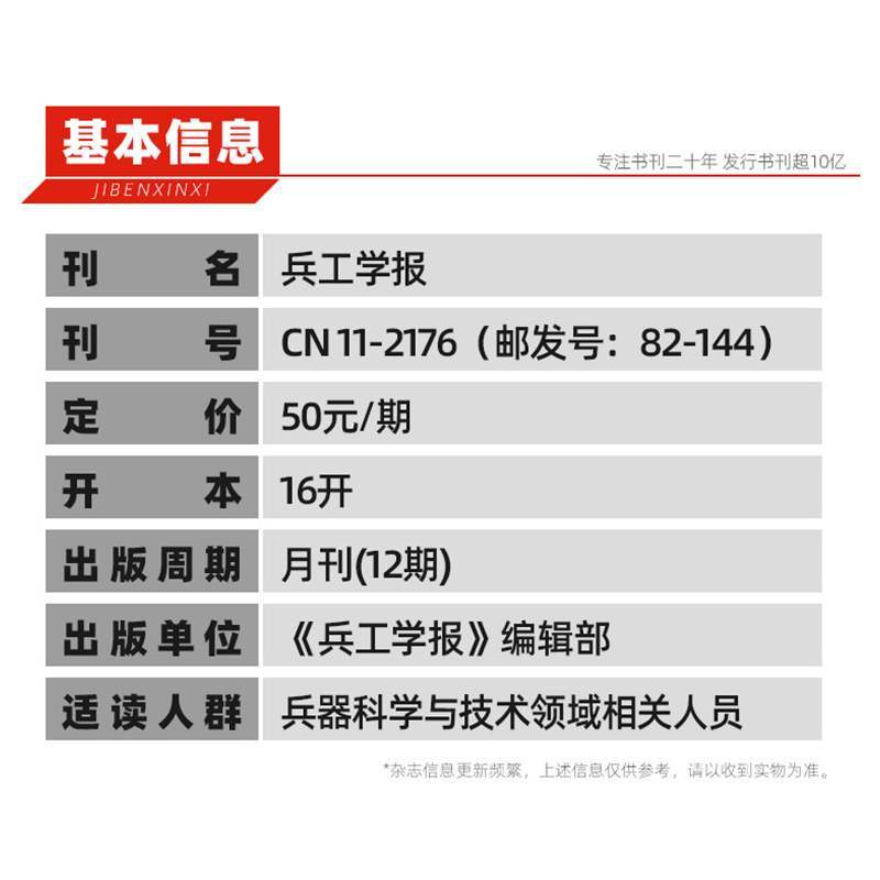 兵工学报杂志1月起订全年12期订阅 2026年订阅