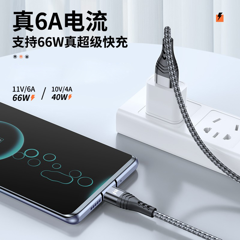 3米加长66w 40w超级快充电线5 6A适用华为小米type 数据线 waitu便携0.5 c充电宝短款