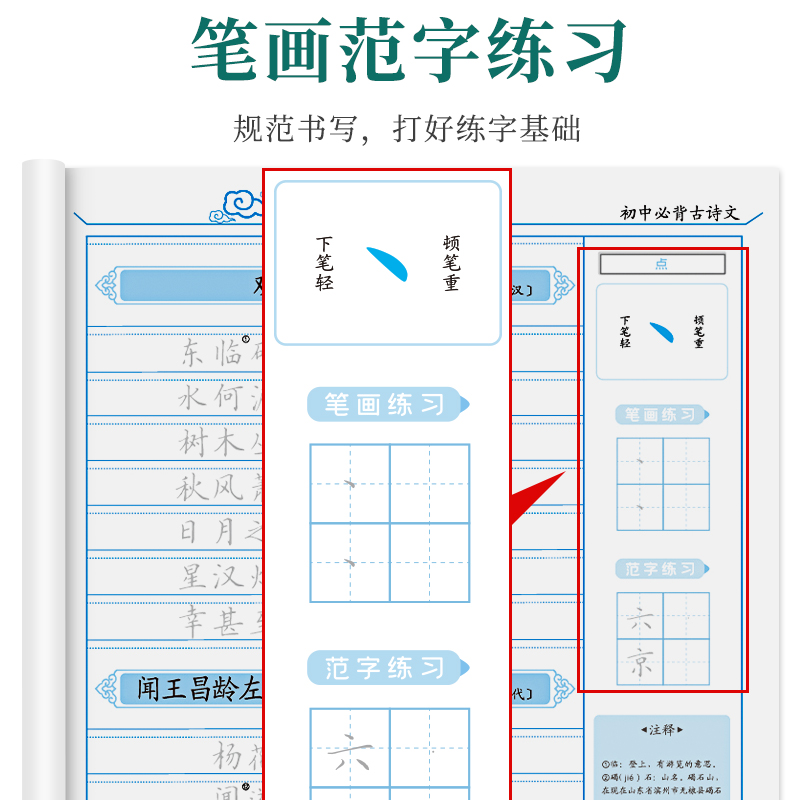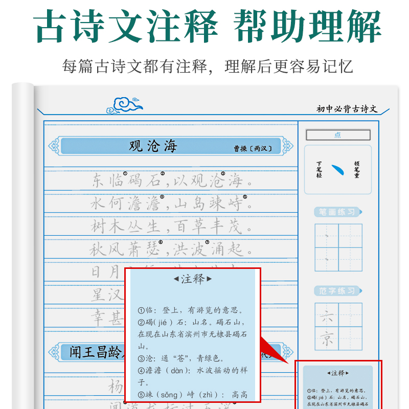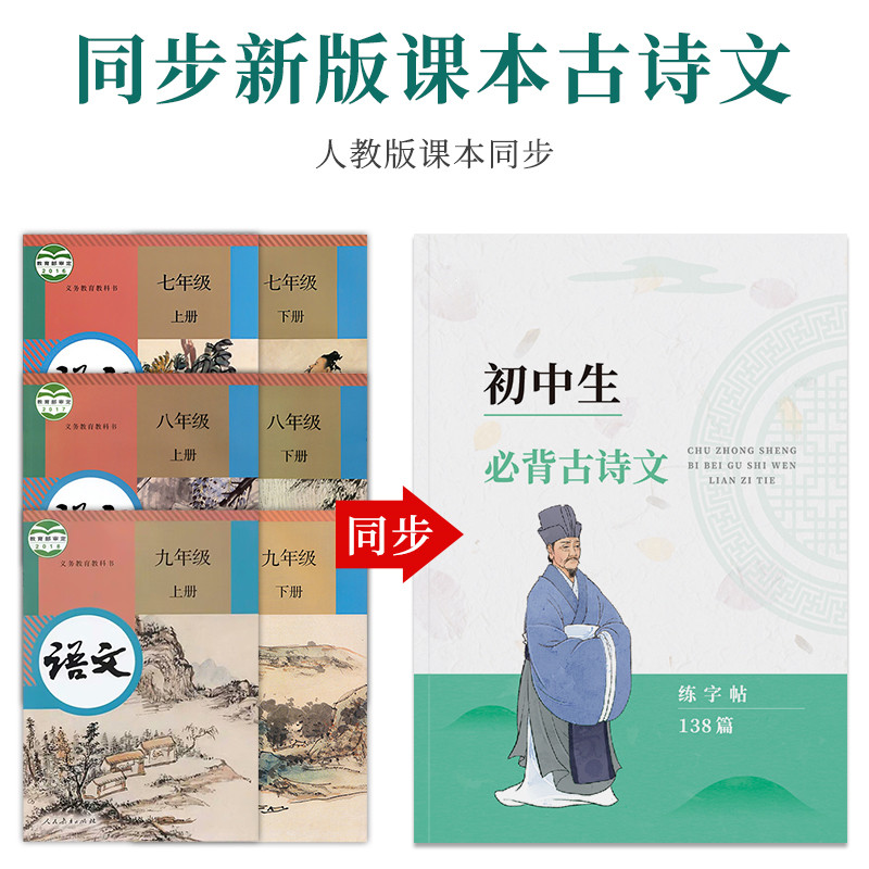初中生高中生必背古诗词字帖中学生七八九年级上册下册正楷临摹楷书钢笔硬笔练字帖2021年人教版 高一语文课本同步文言文书法练字本