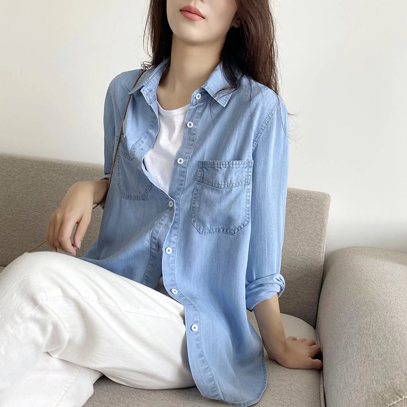 纯棉复古秋oversize长袖 女中长款 衬衣街头 森马牛仔衬衫 森柔牛仔